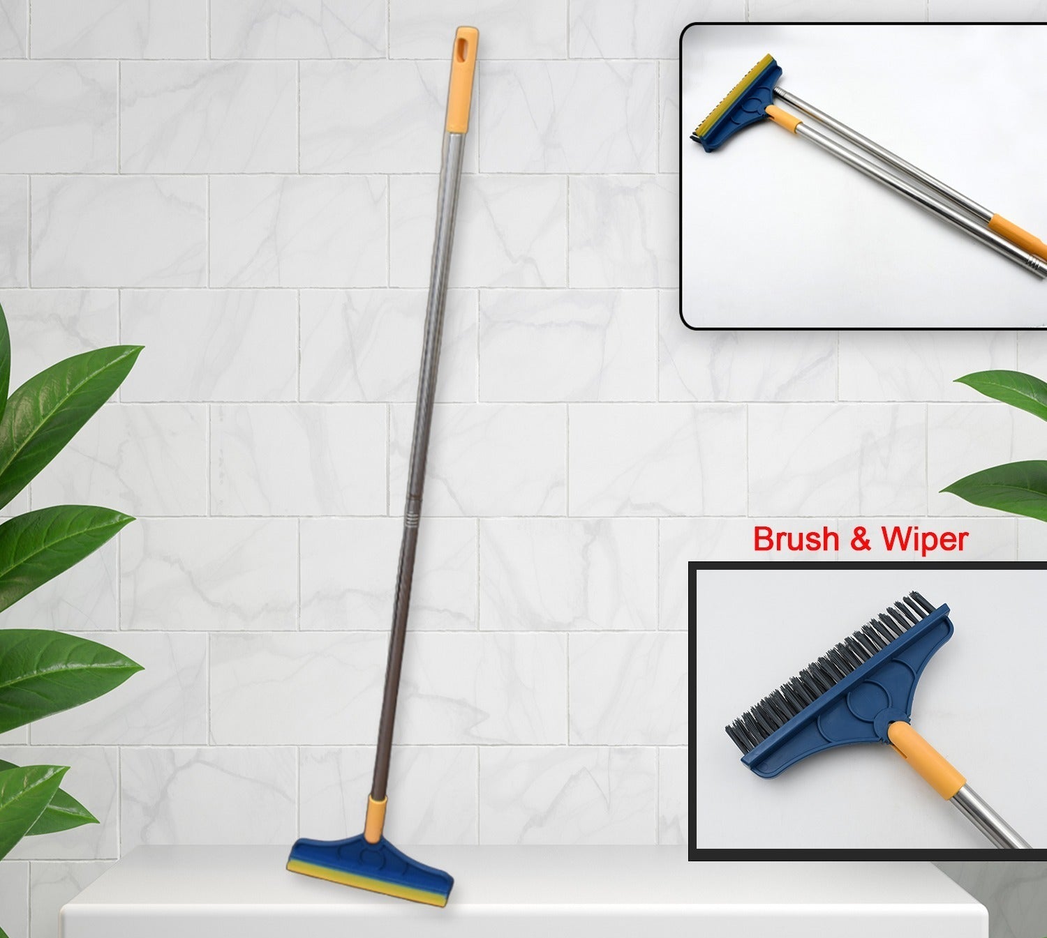 - 2 IN 1 BRUSH AND SCRAPER You can use the back of the scraper bar to scrub the waste water after sweeping your floor. Scratch the water and brush your floor at the same time, clean and dry with a single wipe. Finish your cleaning job quickly.